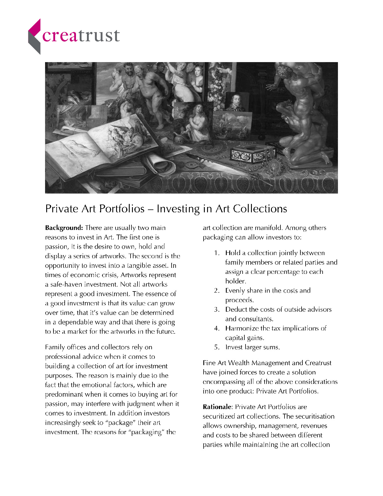 Factsheet Securitisation - Art Collections Rationale - Art as an investment - Functioning |